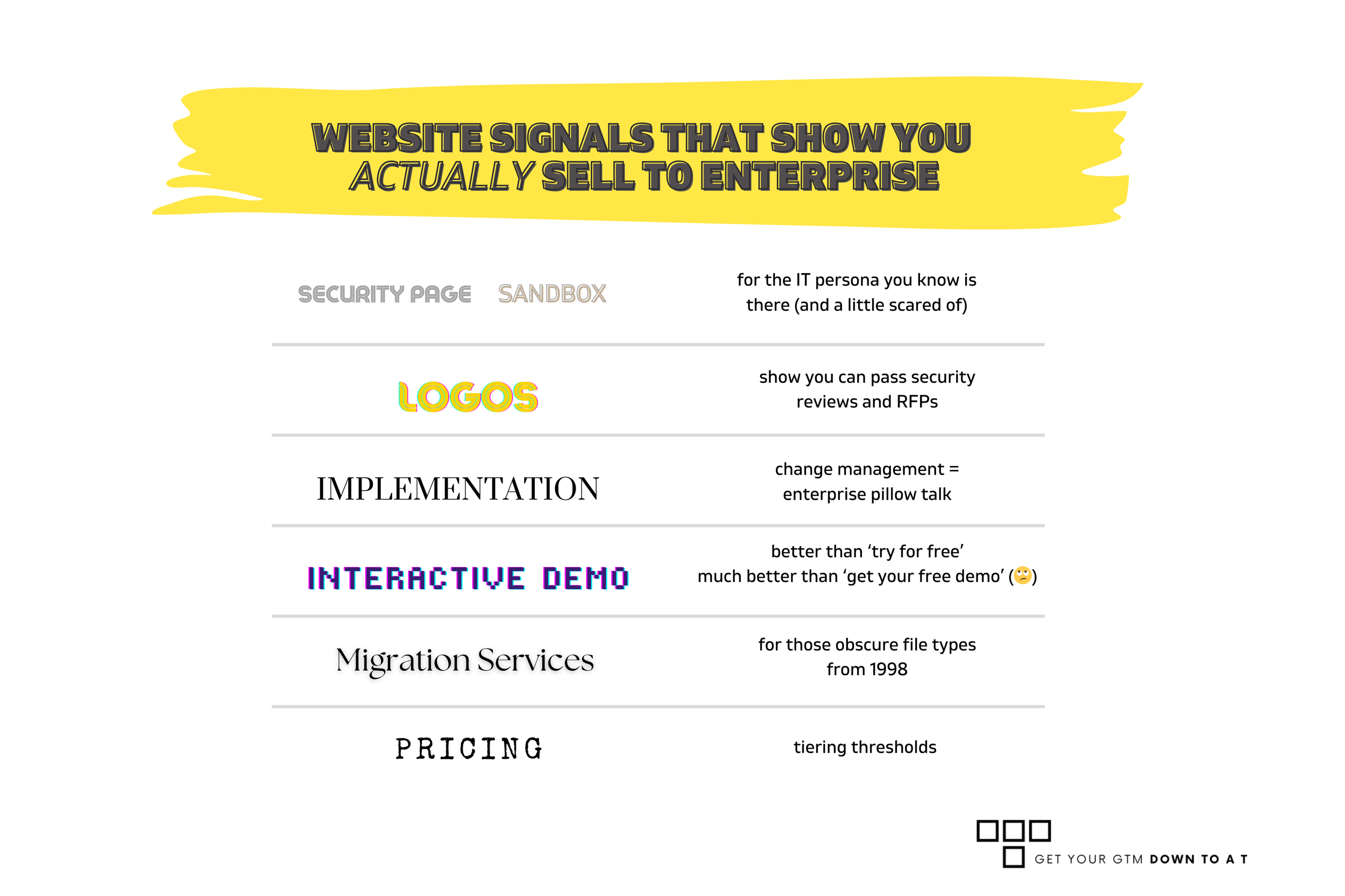 Someone once told me that having an ‘enterprise’ page is the #1 tell that you don’t actually sell to enterprise companies. I laughed, because they’re absolutely right.